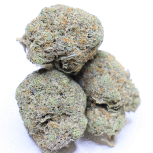 Cali Cake is an indica dominant hybrid strain (80% indica/20% sativa) created through crossing the iconic Gorilla Glue #4 X LA Kush strains. Love a true indica high and great level of potency? Cali Cake is the perfect bud to add to your routine. This bud packs a calming and soothing full-bodied high that creeps in before taking hold for hours on end. You’ll feel the effects hit you slowly, building in the back of your head and spine before taking hold. This state is heavy yet relaxing in nature, leaving you completely locked to the couch and pretty immovable. A heady state comes next, washing over your brain and lifting your mood into a state of unfocused and giggly happiness. In combination with its high 22-29% average THC level, these effects make Cali Cake a great choice for treating those suffering from conditions such as insomnia, depression, nightmares, chronic pain, mood swings and chronic stress. This bud has a sweet and creamy sugary vanilla cake flavor with a lightly earthy nutty exhale. The aroma is just as delicious, with a creamy vanilla cake overtone accented by a touch of woody pine and fresh kush. Cali Cake buds have fat oversized and fluffy dark olive green nugs with dark purple undertones, deep red-orange hairs and a coating of frosty dark purple-tinted white crystal trichomes.