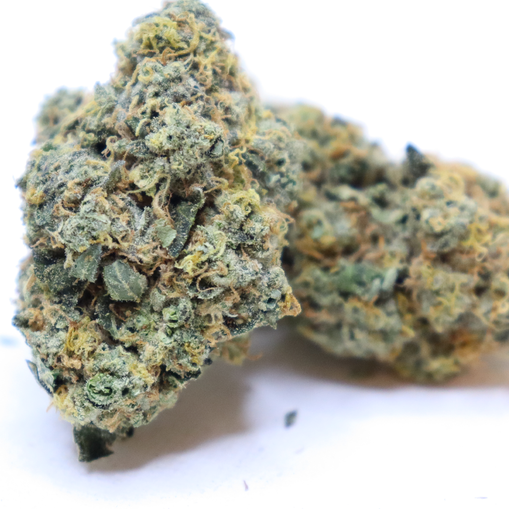 Money Pug is a super rare sativa dominant hybrid strain (70% sativa/30% indica) created through crossing the infamous Money Maker with another unknown hybrid strain, although it is thought to be a member of the Dawg family. This crazy dog brings on a heavy-hitting high, with long-lasting and lifted effects that are great for when you need to get up and going but don’t have too much on your to-do list. The Money Pug high starts with a relaxing lift that fills your mind with a blissful euphoria without aggravating any negative or racing thoughts. As your mind settles into a peaceful state, your body will start to follow suit with a peaceful tingle that won’t affect your energy level in the slightest. With these effects and its high 22-29% average THC level, this bud is often chosen to treat conditions such as chronic stress or anxiety, depression, and chronic pain. This bud has a sweet herbal spicy flavor with an earthy exhale that’s slightly flowery and skunky. The aroma is very fragrant and floral with a rich earthy overtone accented by spicy herbs. Money Pug buds have small tapered minty green nugs with lots of thin amber hairs and a coating of bright frosty white crystal trichomes.